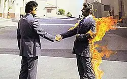 ![]() Rondell (right) on the cover of Pink Floyd's 1975 album Wish You Were Here, shaking hands with Danny Rogers | |