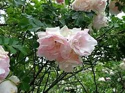 Rosa 'New Dawn' is a light pink modern climbing rose cultivar, discovered by Somerset Rose Nursery in New Jersey in 1930. The cultivar is a sport (genetic mutation) of Rosa 'Dr. W. Van Fleet'. 'New Dawn' was the first plant to be patented.[1] It was patented by H.F. Bosenberg in 1931.[2] 'New Dawn' was voted the most popular rose in the world at the 11th World Convention of Rose Societies in 1997.[3] It is also recognized worldwide as one of the best of the repeating climbing roses.[4] 'New Dawn' is an Earth-Kind rose.[5]