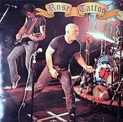 Anderson's one-time bandmate, bass guitarist Geordie Leach was recruited to replace Turner and record their self-titled debut LP, Rose Tattoo, which reached the top 40 on the Australian Kent Music Report Albums Chart in November 1978.[6] The album, produced by Vanda & Young, was released in some markets as Rock N' Roll Outlaw from their second Australian single, "Rock N' Roll Outlaw" which did not reach the top 50.[2][6] Leach left the band in May 1979 to be replaced in October by guitarist Lobby Loyde (Purple Hearts, Wild Cherries). The band toured the United States, recorded an unreleased album in Los Angeles,[4] and then toured Europe (including UK), but by September Loyde had left and Leach had returned.[2]