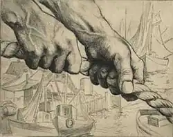 At etching of hands entitled 'The Sailor' by Roselle H. Osk of Seaman Av appears in the new book, 'American Prize Prints of the Twentieth Century.'