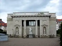 The Hercules Pavilion stands at the end of Kavalergangen and takes its name from a statue of Hercules positioned in a deep niche between two Tuscan columns. It is flanked by two smaller niches with statues of Orpheus and Eurydice. The three statues were made by the Italian sculptor Giovanni Baratta and acquired by Frederik IV during his visit to Italy.[3]