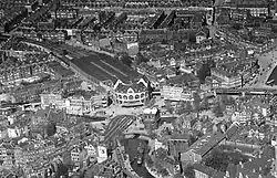 To the very left is the railway line between Rotterdam Centraal and Blaak.