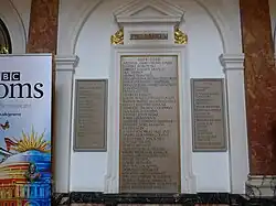 The Royal College of Music War Memorial is situated in the entrance hall of the Royal College of Music building, Prince Consort Road in South Kensington London. The original central panel lists 38 RCM students and staff who lost their lives in World War I.[1] 18 of them were organists.[2] The memorial was unveiled on 10 November 1922 by Lord Justice Younger.[3] Obituaries of many of those listed on the memorial were printed in wartime editions of the RCM Magazine.