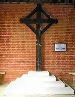Located in the south porch is a large cross, about nine feet high and made of dark wood. The inscription on the cross reads: "In memory of the Officers, SNCO's and Men of 1st Division killed in action near High Wood during September 1916 - RIP".[11]