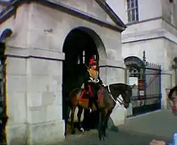 The King's Troop provides the King's Life Guard in Whitehall for three weeks in August each year while the Household Cavalry Mounted Regiment goes away for summer training.