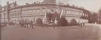 The new wing was completed in 1896 and included new quarters for the princely family, such as a library, reception rooms, a dining room, two winter gardens and a covered porte-cochère.[3] A state-of-the-art electric elevator from the Schindler company was also installed, connecting the ground floor with the first floor. On the first floor were the apartments of Prince Ferdinand, Princess Maria Luisa as well as from the crown prince, the future king Boris III (1894–1943); on the second floor those of prince Kiril (1895–1945) and Princesses Eudoxia (1898–1985) and Nadezhda (1899–1958).[3]
