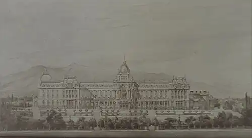From 1880 to 1882, the Austrian architect Viktor Rumpelmayer directed the reconstruction of the old konak, which was almost completely demolished, although the foundations were used to erect the new palace, which was also enlarged with an eastern wing for receptions.[3] Likewise, all the façades were redone following the sumptuous and cosmopolitan Second Empire style with chateauesque connotations. The idea was to give the new princely residence a cosmopolitan air that would symbolize Sofia's transformation from an Ottoman provincial city to the capital of a newly independent state. In the execution of the project, Rumpelmayer was supported by the Austro-Hungarian architects Friedrich Grünanger, Antonín Kolář (also known as Adolf Václav Kolář), Jakob Heinrich Mayer and Leers.[1][3]