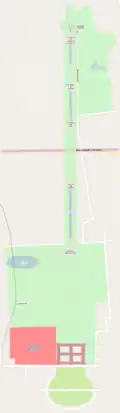 The palace has a rectangular plan, measuring 247 m × 184 m (810 ft × 604 ft), and the four sides are connected by two orthogonal arms, forming four inner courts.