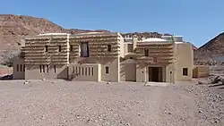 Feynan Ecolodge was constructed in 2005 by renowned architect Ammar Khammash in Wadi Feynan at the western edge of the Dana Biosphere Reserve, the only reserve that includes four different bio-geographical zones of the country: Mediterranean, Irano-Turanian, Saharo Arabian and Sudanian penetration.[16] Feynan Ecolodge is owned by the Royal Society for the Conservation of Nature and is the first of its kind in Jordan.[17]