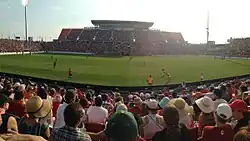 Rugby sevens at the 2015 Pan American Games was held in Toronto, Ontario, Canada from July 11 to 12.[1] The rugby sevens competition was held at BMO Field, although due to naming rights, the venue was known as Exhibition Stadium for the duration of the games.[2] This was the second time that the men's competition will be held, following rugby sevens' debut at the 2011 Games, with women's rugby sevens making its debut.[3] A total of eight men's and six women's teams competed in each respective tournament.[4]