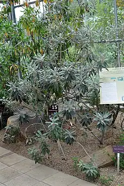 This plant is relatively rare because of its weak regeneration and due to introduced monkeys which feed on the flower buds. The only occurrences are on the slopes of Le Morne Brabant, Mauritius. Thanks to the efforts of botanist Joseph Gueho seeds were successfully germinated and grown in cultivation for the first time in 1973.