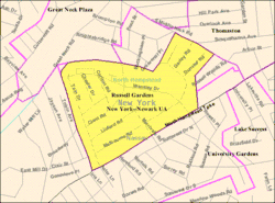 ![]() ![]() Russell Gardens, New York Location on Long Island ![]() ![]() Russell Gardens, New York Location within the state of New York | |