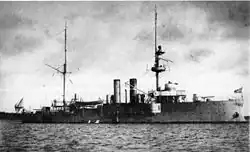 Together with the cruiser Varyag, Korietz was dispatched from Port Arthur to the main Korean port of Chemulpo (modern-day Incheon) in early 1904 to protect Russian interests, as diplomatic tensions continued to increase between Russia and the Empire of Japan. After the Russian transport Sungari arrived at Chemulpo on 7 February 1904, reporting the sighting of a large Japanese force approaching, Korietz (under the command of G. P. Belyaev) was ordered to return to Port Arthur to report and request instructions. In the early morning of 8 February 1904, Korietz spotted Chiyoda outside the Chemulpo roadstead, and mistaking it for a fellow Russian ship, loaded its guns for a salute. On closing in, the crew of the Korietz realized their mistake and in the ensuing confusion the guns were discharged. Chiyoda responded by launching a torpedo. Both sides missed, but this was the first actual exchange of fire in the Russo-Japanese War, and it is highly unclear which side actually opened fire first. Korietz retreated back to Chemulpo harbor.[1]