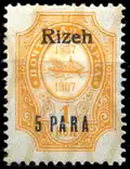 Beginning in 1900, the printing of special stamps was abandoned, in conjunction with the use of the local Ottoman currency of paras and piastres. Instead, regular Russian stamps were surcharged.