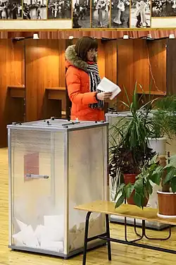 The president is elected by direct popular vote[19] in a two-round majoritarian contest: if no candidate receives over 50% of the vote in the first round, the two candidates with the most votes advance to a run-off.[20] The second (run-off) round is held exactly three weeks after the first.[21] The second round shall appoint with the written consent of the candidate to participate in the second round. If, prior to the second round, one of the registered candidates to be voted on has withdrawn his candidacy or has left it for other reasons, his / her place shall, by the decision of the Central Election Commission, be transferred to the next registered candidate by the number of votes obtained. A new candidate shall be put to the vote if there is a written Declaration of consent to participate in the second round of elections. Such application must be submitted to them no later than the second day after the departure of the candidate who initially participated in the second round. In this case, the voting shall be held on the first Sunday after 14 days from the date of application. At the end of the second round, the candidate with a simple majority of votes is considered elected. The second round can be held and one candidate, if after the departure of the remaining candidates will be only one. In this case, the voters must vote "for" or "against" the candidate. At the same time, the candidate is considered elected if he has received at least 50 percent of the votes. Otherwise, the election campaign starts again and new election are held.[22]
