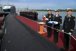 Severodvinsk was commissioned into the Russian Navy on 30 December 2013.[3] The flag-raising ceremony was held on 17 June 2014, marking its introduction into the Northern Fleet.[14]