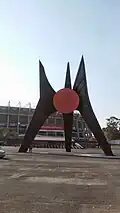 There are also three guest sculptures that are not located on the main route, but in three main venues of the Summer Olympics: Sol Rojo by American Alexander Calder in the Estadio Azteca, Hombre Corriendo by Mexican Germán Cueto in the Olympic Stadium and Osa Mayor by Mathias Goeritz in the Palacio de los Deportes.[2]