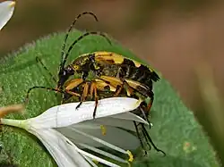 Rutpela maculata, the spotted longhorn, is a beetle species of flower longhorns of the family Cerambycidae, subfamily Lepturinae.