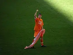 Despite being very quiet by nature, Coleman has always shown great leadership qualities which propelled him to the role of captain of the Irish national team.[101] He led the Ireland team out for their final two matches at Euro 2016, earning much praise from teammates, fans and media alike.[101][102][103] He took on the role of Ireland captain on a permanent basis in September 2016.[81] In March 2018, it was suggested by ESPN FC journalist Luke O'Farrell that Coleman should also be the next club captain at Everton, highlighting that the full-back "leads by example and, more importantly, demands more from his teammates. Coleman has never been afraid to let another player know when something is not working or needs improvement. [...] Coleman sets the mark for the rest of the team to follow".[104] O'Farrell's wish came to fruition in August 2019 when Coleman became the new Everton captain following the departure of Phil Jagielka.[55]