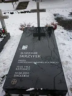 Sławomir Stanisław Skrzypek (10 May 1963 – 10 April 2010) was the President of the National Bank of Poland (NBP) from 2007 until his death in 2010. He died in the 2010 Polish Air Force Tu-154 crash, when a plane transporting a number of Polish notables, including the President of Poland Lech Kaczyński, crashed en route to a ceremony commemorating the 70th anniversary of the Katyń massacre.[2][3]
