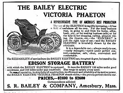S.R. Bailey & Company was an American manufacturer of electric automobiles from 1905 until 1916. They were based in Amesbury, Massachusetts, an early capital of automobile manufacture prior to the Great Depression.