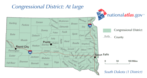 South Dakota's at-large congressional district is the sole congressional district for the state of South Dakota. Based on area, it is the fourth largest congressional district in the nation.