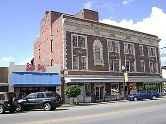 The SOWEGA Building or Southwest Georgia Melon Growers Association Building (also known as The Watermelon Building) in Adel, Georgia at 100 South Hutchinson Avenue (US 41), at the corner with Fourth Street. (SOWEGA comes from SOuth WEst GeorgiA - and "GA" is the abbreviation for "Georgia".) It was built in 1930. It is three stories tall and made of red brick, built in a commercial style. It has a roof deck and a basement. It is made of concrete reinforced with steel. Terracotta trim accents the exterior. The base is finished in marble. It features unique green terracotta watermelons in terracotta lozenges in a broad diamond, which represent the SOWEGA trademark. The third floor was remodeled in the early 1960s and the ground floor was remodeled in 1988. It was listed on the National Register of Historic Places in 1990.[1][2] The Adel-Cook County Chamber of Commerce currently uses the building.[3]