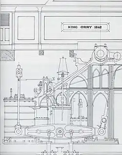 King Orry is of special interest, as she was the only ship in the Company's history to be built in Douglas. Although the John Winram yard gets the credit for her construction, it is probable that the building was supervised by Aitken of Liverpool, and the Douglas yard merely carried out the construction. Later in 1842, she was taken under tow by Mona's Isle to Glasgow, for her engines to be fitted by Robert Napier & Co.