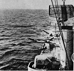 The Swedish Navy ordered the missile in 1965 at a cost of 86 million kronor.[4] After some test firing, the two Halland-class destroyers were equipped with the Rb 08 in 1966. It was the first operational ship-based anti-ship missile in the western world. The Swedish Coastal Artillery organized a coastal missile battery in 1968 to operate the new weapon.[5] A total of 98 missiles were built, production completing in 1970.[3]