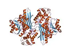 - ^ Andi B, Xu H, Cook PF, West AH (November 2007). "Crystal structures of ligand-bound saccharopine dehydrogenase from Saccharomyces cerevisiae". Biochemistry. 46 (44): 12512–21. doi:10.1021/bi701428m. PMID 17939687.