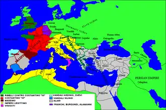- ^ a b c Peter Heather, The Fall of the Roman Empire: A New History of Rome and the Barbarians, (Oxford University Press, 2006), pp. 227–228.