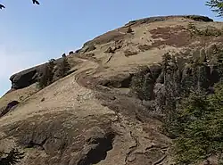The hike to the taller of the two peaks is a 6-mile (9.7 km) round trip consisting of challenging terrain. Elevation gain is 1,603 feet (489 m) and leads to a 360-degree view to the Pacific Ocean, Cascade Mountain peaks such as Mount Hood, Mount St. Helens, Mount Rainier, Mount Adams, and other peaks in the Coast Range. The lower peak—elevation 3,200 feet (980 m)— to the east and south does not have trail access. The trail is steep at times along rock outcroppings, but does offer views that include wildflowers in bloom in the springtime.[6] Beside the trailhead is a picnic area.[7]
