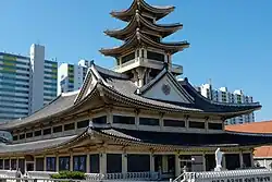 Saenamteo was named a "martyrs' shrine" by the Korean Catholic church in 1950. A monument to Catholic martyrs was placed in 1956, and maintained by the Clerical Congregation of The Blessed Korean Martyrs since 1957. In 1981 the Saenamteo Parish was split off from the Han River Parish, and a Catholic church was established by the Archdiocese of Seoul. The Congregation of the Blessed Korean Martyrs began to construct a new church building in 1984, in a traditional Korean architectural style, for the commemoration of 200 years of Roman Catholicism in Korea. It was completed and consecrated three years later, in 1987.[5] On September 3, 2006, a Seoul Archdiocese Saenamteo Martyrs' Shrine was opened within the church. It includes historical displays and the relics of nine of the Korean Martyrs.[12]