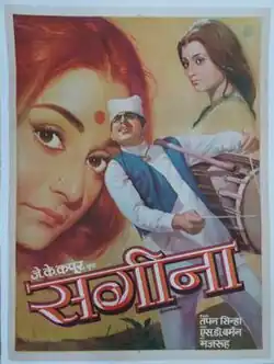 Sagina is a 1974 Hindi film, produced by J. K. Kapur and directed by Tapan Sinha, the film stars Dilip Kumar, Saira Banu, Aparna Sen, and Om Prakash. It was a remake of 1970 Bengali movie Sagina Mahato directed by Tapan Sinha with the same lead pair in the cast.[1] This version was a commercial failure, and Dilip Kumar's first consecutive failure in almost three decades since 1945.[2][3]