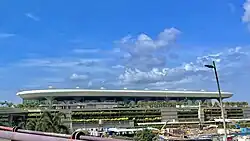 The New Terminal has around 21,000 square metres (230,000 sq ft) of retail space, lounges and travel services, over 5,000 square metres (54,000 sq ft) of landscaping and a multi level car park for 5,000 cars.[64] The parking Management System and Revenue control system for the entire MLCP has been designed and supplied by SKIDATA.[65] It has 192 check-in counters and 60 immigration counters for departing passengers, and 14 baggage carousels and 76 immigration counters for arriving passengers. To transfer passengers across its four levels, the building has 48 escalators and 75 elevators. The terminal also features 42 travelators.[60] In the initial phase of development, the apron adjoining Terminal 2 provides a total of 48 stands including 3 Code F stands (for the A380). In the final phase of development, a total of 38 Code E/F contact stands, 14 Code E/F remote stands and 20 Code C remote stands are provided (total 72 stands).[62]