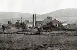 In 1868, 50,000 tonnes of coal were extracted at Saint-Joseph, and the following year production rose to 66,000 tonnes, making it the company's most productive shaft.[17] In 1878, engineers noticed that water from the Rahin was invading the well.[18] In 1895, mining ceased for good at the Saint-Joseph shaft.[7] The coking plant was replaced in 1898 by the Chanois coking plant.[19]