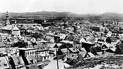 The new municipal code of 1855 forced the small villages and towns of Quebec to assign themselves a municipality. Saint-Sauveur was grouped together with Limoilou to form a municipality known as the "suburb of Saint-Roch" until 1862. From a religious perspective, the Archbishop of Quebec transformed what had been a service of the parish of Saint-Roch into a fully-fledged parish in 1853.[2] He entrusted its management to the congregation of the Missionary Oblates of Mary Immaculate. The neighbourhood obtained an autonomous municipal charter in 1862, and changed its official name from Saint-Roch Nord (North Saint-Roch) to Saint-Sauveur in 1872.[3]