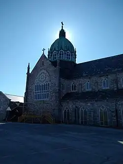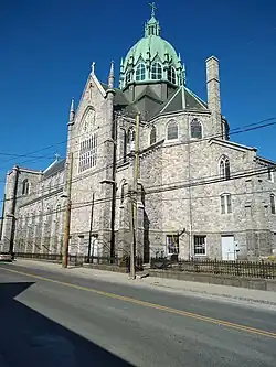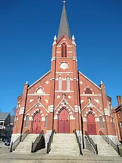 Saint Anne Church, formally the Shrine of Saint Anne for Mothers, is a Roman Catholic church located in the South End neighborhood of Waterbury, Connecticut, part of All Saints Parish (Spanish: Todos Los Santos). Saint Anne Parish was founded in 1886 to serve city's the French-Catholic population. For nearly 100 years, two 100 foot steeples served as a prominent Waterbury landmark; however, due to ongoing structural problems, the spires were carefully removed in 2019 and stored for possible reconstruction.