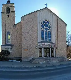 The French Catholic community of Waterbury first met at the old Universalist Trinity chapel on Grand Street.[1] In April 1886 Bishop Lawrence S. McMahon, appointed Father Joseph W. Fones of Watertown to organize a parish. About two weeks later Father Fones first celebrated Mass at the Grand Street hall for the French congregation. Mostly French Canadian immigrants from Quebec, they chose St. Anne as the patroness of the parish.[2] The parish's first church was built in 1888–1889 on Dover Street and dedicated on January 27, 1889.