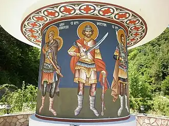 Fresco depicting St. Mercurius Abu-Sifin (center), Sase Monastery, Bratunac, Bosnia