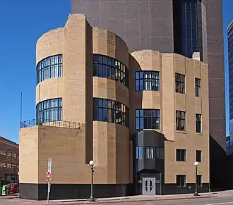 The St. Paul Women's City Club is a 1931 Art Deco Streamline Moderne-style Mankato limestone clubhouse in Saint Paul, Minnesota, that was designed by architect Magnus Jemne (1882-1964). The building was designed to provide a "center for organized work and for social and intellectual intercourse", and provided a dining room, assembly rooms, dressing rooms, and bedrooms for the 1000 members of the club and their guests. The building was sold to the Minnesota Museum of Art in 1972; then the Wold architectural firm;[2] and finally in 2015, District Energy St. Paul.[3] It is listed on the National Register of Historic Places.[4]