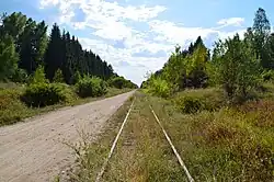 In May 1858, construction started near Vilnius on the first section of 19 kilometers. On 1 May 1859 the ground works started along the entire route Daugavpils–Vilnius–Lentvaris–Kaunas–Kybartai. The end of summer of 1860 marked the end of the construction of the Ostrov-Daugavpils–Vilnius railway. The first train from Daugavpils arrived in Vilnius on 16 September [O.S. 4 September] 1860.[6] In 1861, this branch was completed to the Prussian border, and between Verzhbolovo Station in Kybartai and Eydtkuhnen in Prussia (now Chernyshevskoye in Russian Kaliningrad Oblast) the first junction between Russian gauge and standard gauge railway systems was built, with rails in both gauges between the border stations.