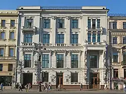 The bank was initially located at 6, Angliyskaya Embankment. In 1898, the bank moved to a new purpose-built head office at 58 Nevsky Prospekt on a design by architect Stanislas A. Brzhozovsky.[4] The latter property was expanded in 1912 with an additional building facing Ekaterininskaya Street.