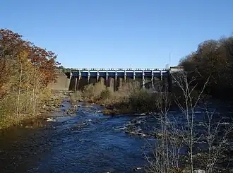 The river has historically served as a source of both food and hydro-power, and numerous dams and mills were built along the river during the 1800s.[15] Though these dams served the needs of the growing human population along the river, they also impeded movement of salmon seeking access to upstream spawning grounds, and they contributed to the eventual extirpation of landlocked Atlantic salmon from the river by 1872.[5]