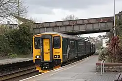 The Cornwall Railway was amalgamated into the Great Western Railway on 1 July 1889.[5] To counter competition from electric trams, the Great Western Railway opened several small stations in Plymouth and began to operate an intensive service of local trains between Saltash, Plymouth and Plympton in July 1904.[6] The services were vastly reduced after the Tamar road bridge opened in 1961.[3] The Great Western Railway was nationalised into British Rail from 1 January 1948 which was in turn privatised in the 1990s.
