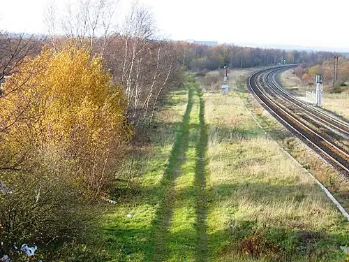 Although technically on the North Wales Line the station was, for all practical purposes, on the Chester to Denbigh branch line as trains from the station generally only used the smaller line. The station however would have been busy with railway workers as the Mold Junction Motive power depot and employee cottages was right next to it.[3] The station closed on 30 April 1962 and nothing of it remains, although the depot is still there.