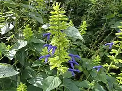 Salvia mexicana (Mexican sage) is a herbaceous shrubby perennial native to a wide area of central Mexico, growing at elevations from 2,600 to 8,500 feet (800 to 2,600 metres). It grows in tropical areas in the south and arid subtropical habitats in the north, often at the edges of forests.[1]