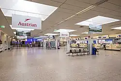 In spring 2014 the airport's home carrier Austrian Airlines announced the closure of their ticketing and service counters at Salzburg Airport due to decreasing demand. Additional services are instead provided directly at the check-in counters.[5]