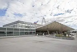 Salzburg Airport has a small footprint, covering only 175 hectares (432 acres) of land but has a 2,750m runway equipped to handle aircraft as large as the Boeing 747-400.[9] Salzburg Airport consists of two passenger terminals:[10]