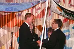 The American branch of Conservative Judaism formally approves of same-sex marriage ceremonies.[8] The issue was previously introduced in the Law Committee of Conservative Judaism in December 2006 which simultaneously prohibited same-sex marriage in Conservative Judaism and allowed Conservative Rabbis to perform same-sex commitment ceremonies. The ruling was reversed, however, in June 2012, the Committee of Jewish Law and Standards voted on the issue of same-sex marriage with thirteen for, zero against, and one abstention. The committee also established two different services that can be used as a guide for rabbis marrying a same-sex couple though neither applies the language or symbols associated with kiddushin ("holy union" in Hebrew and the legal term for marriage) as the term is gender-specific.[7][9] Some synagogues within Conservative Judaism still reject recognition of same-sex unions as marriages, but permit celebration of commitment ceremonies, in part as an expression of their belief that scripture requires monogamy of all sexually active couples.[10]